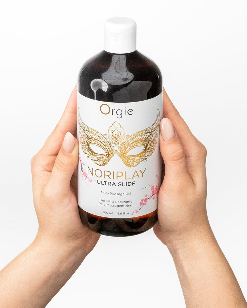Noriplay Ultra Slide é um gel de massagem para realizar a massagem Nuru corpo a corpo.